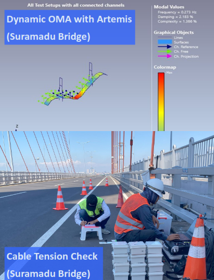We’ve great OMA software and great amounts of sensors. We have more than enough accelerometer to measure the as-build dynamic natural frequency using Artemis and compare it with your design software. The designer and the infrastructures operator can match the eigen value frequency for structure analysis, seismic analysis or vibration analysis.
